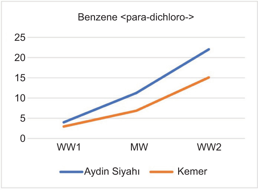 Benzene <para-dichloro-> | 11.25 | 22.05 | 3.95 | 6.85 | 15.11 | 2.91 |