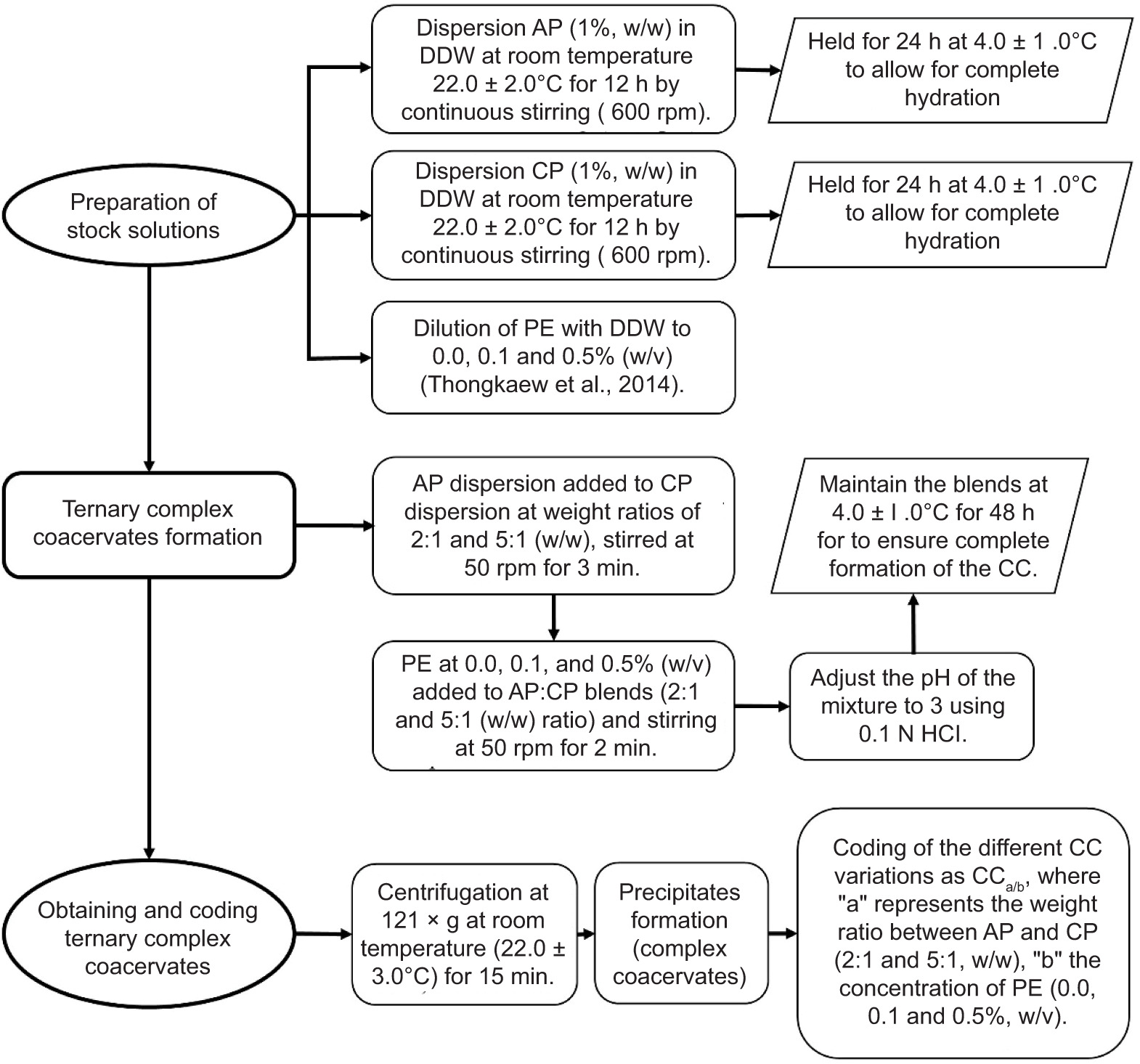 The experimental protocol to carry out the formation of the ternary complex coacervate (Figure 1) was established using the methodology proposed by Hernández-Rodríguez et al. (2014).