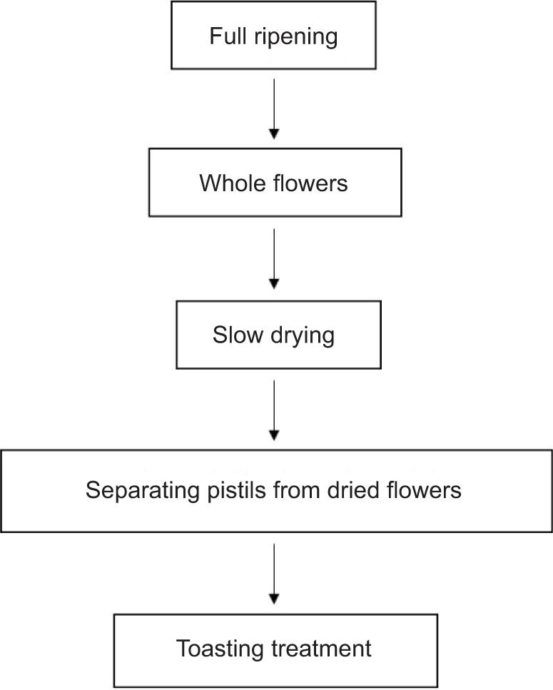 The pistils were kept in tap water for three maceration times: 2, 15, and 24 h at a temperature of 15°C. In total, 12 raw extracts were prepared for each sample and were analyzed in duplicate for a total of 24 raw extracts.
