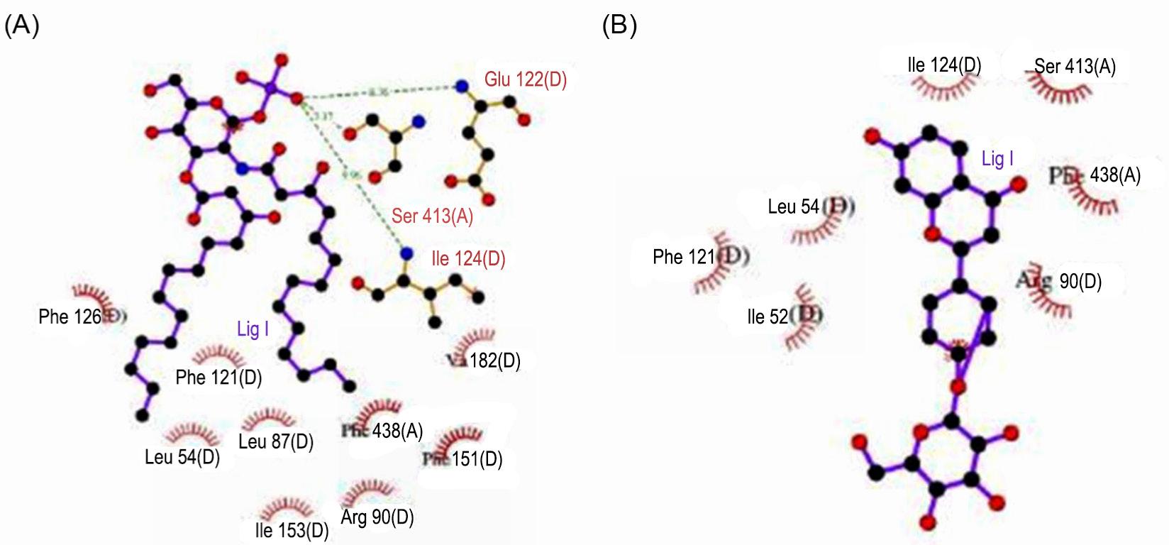 | Liquiritin | 6.28 | Ile124, Ser413, Phe438, Leu54, Arg90, Phe121, Ile52 |
