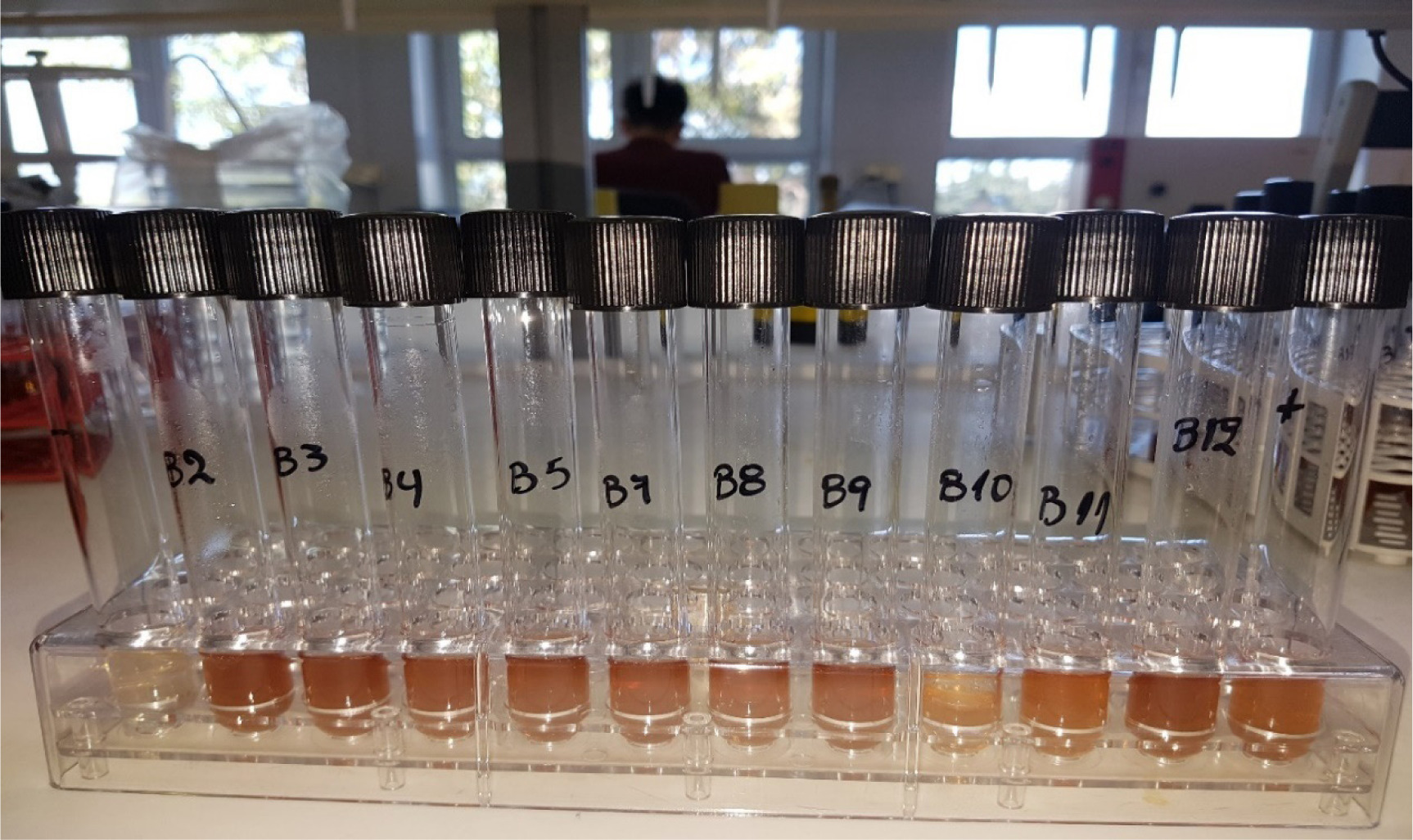 Figure S1. Color gradient of Alicyclobacillus isolates after incubation for the detection of guaiacol production with Dohler DMD kit.