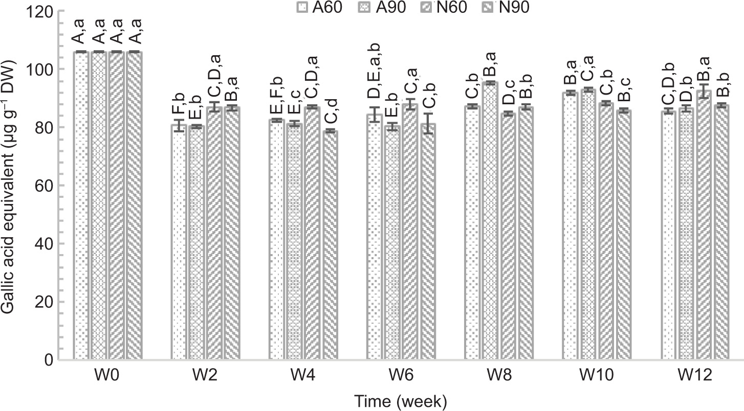 Total phenolic content (TPC), total flavonoid content (TFC), and antioxidant activity were reported as standard equivalent units per assay, and values of the product during storage were compared to the value of freshly produced product using Equation (6) (Jayakody et al., 2021):
