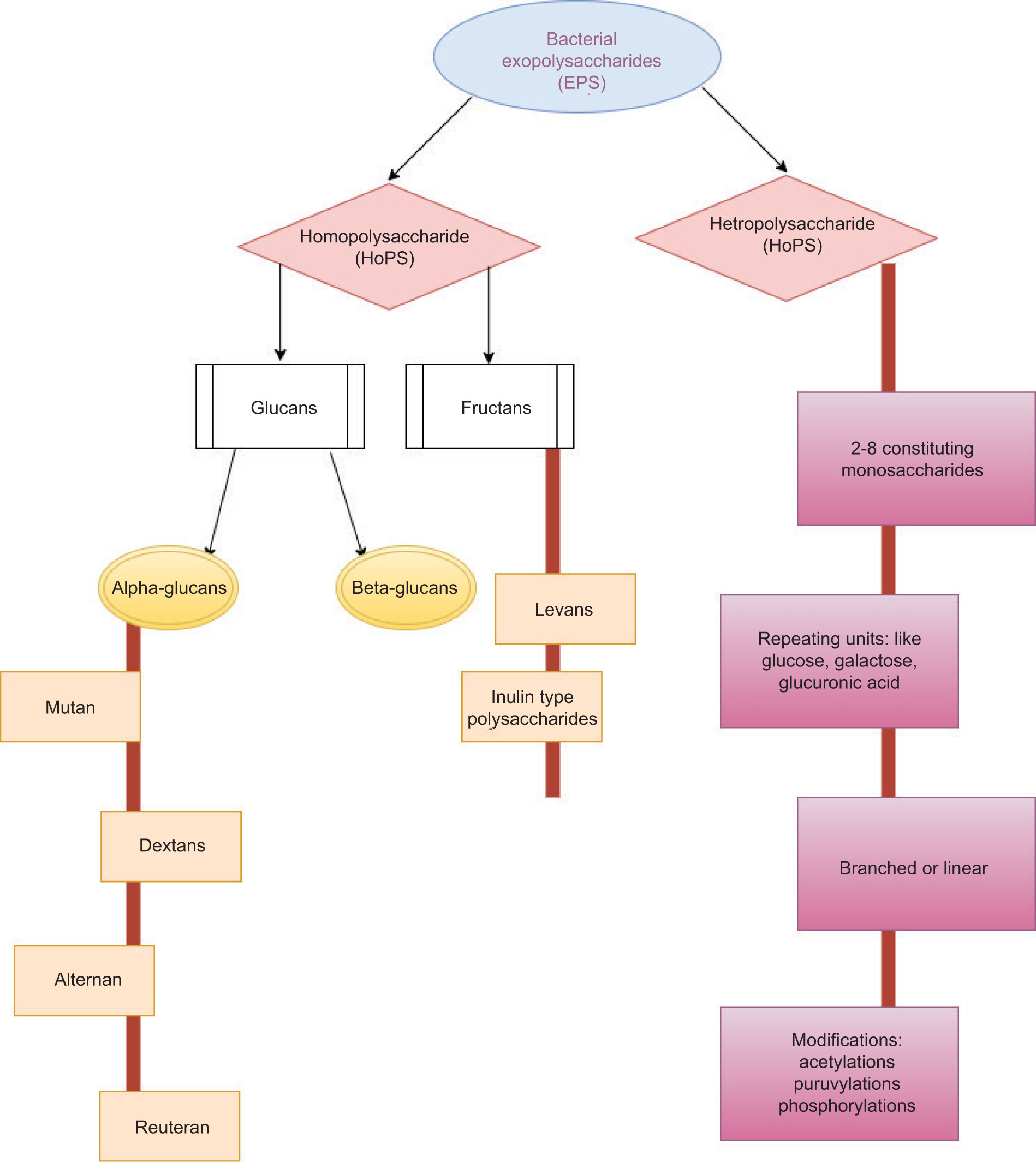 Figure 1. Bacterial exopolysaccharides, types, and characteristics.
