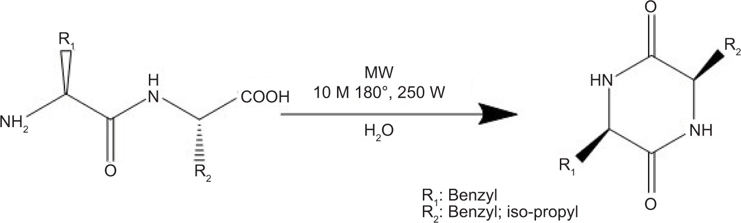 Pérez-Picaso L., Escalante J., Olivo H.F., and Rios M.Y. 2009. Efficient microwave-assisted syntheses of 2,5-diketopiperazines in aqueous media. Molecules. 14(8):2836–2849. 10.3390/molecules14082836