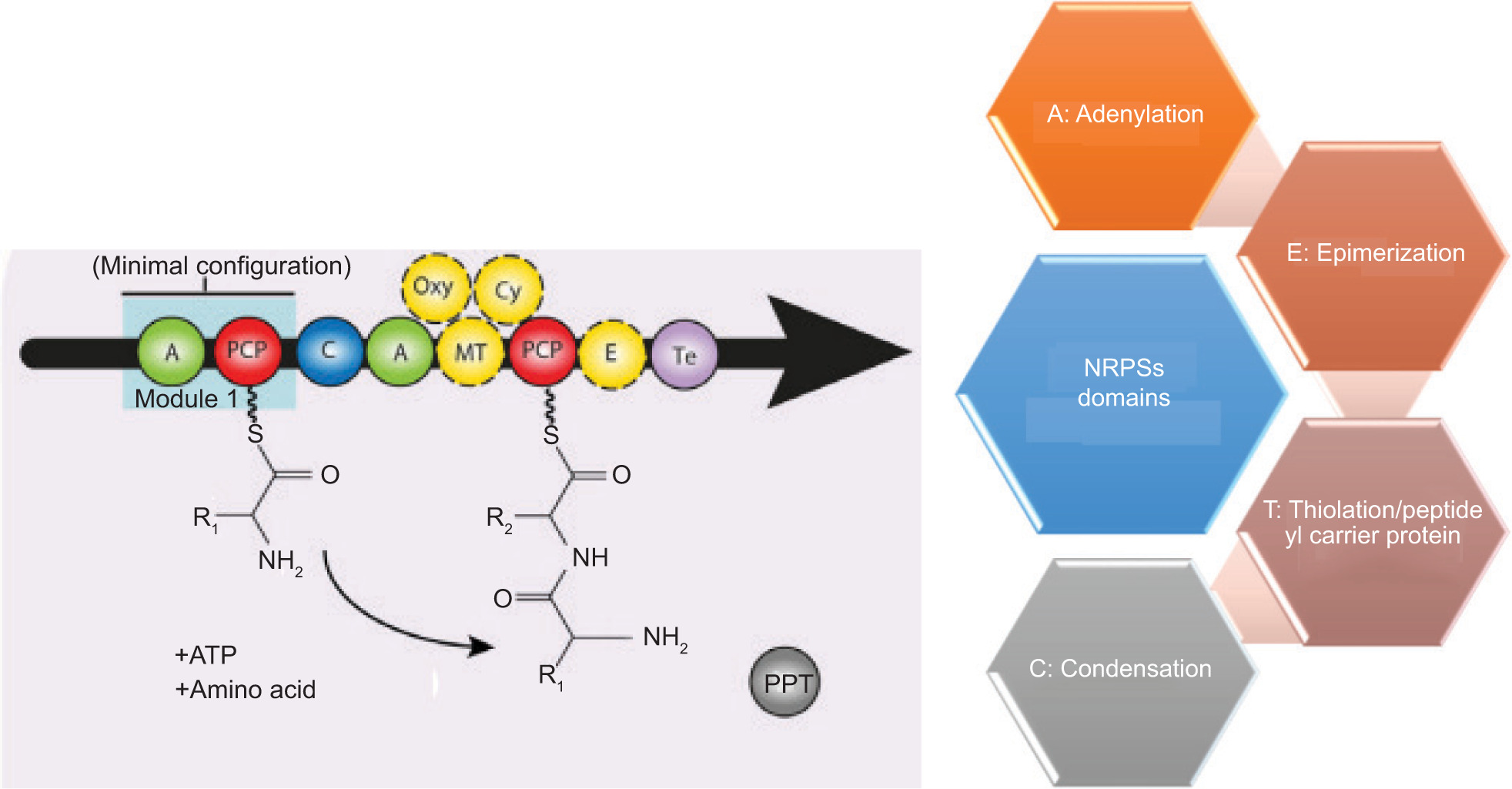 Martínez-Núñez M.A., and López V.E.L.y. 2016. Nonribosomal peptides synthetases and their applications in industry. Sustain Chem Proc. 4(1):1–8. 10.1186/s40508-016-0057-6