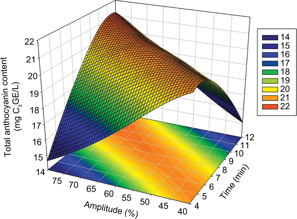 Figure 2. Impact of time and amplitude on total anthocyanin content (TAC).