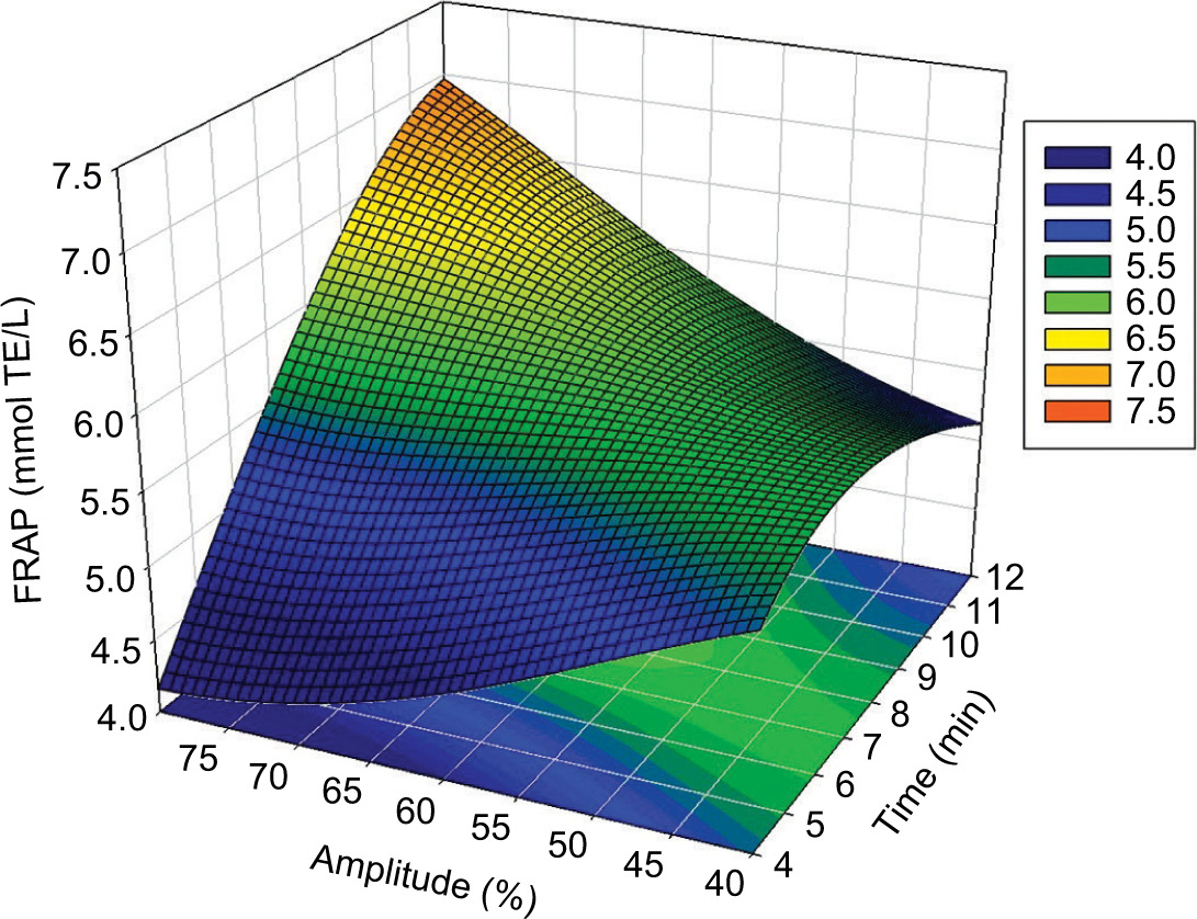 Figure 3. Influence of time and amplitude on antioxidant capacity (FRAP).