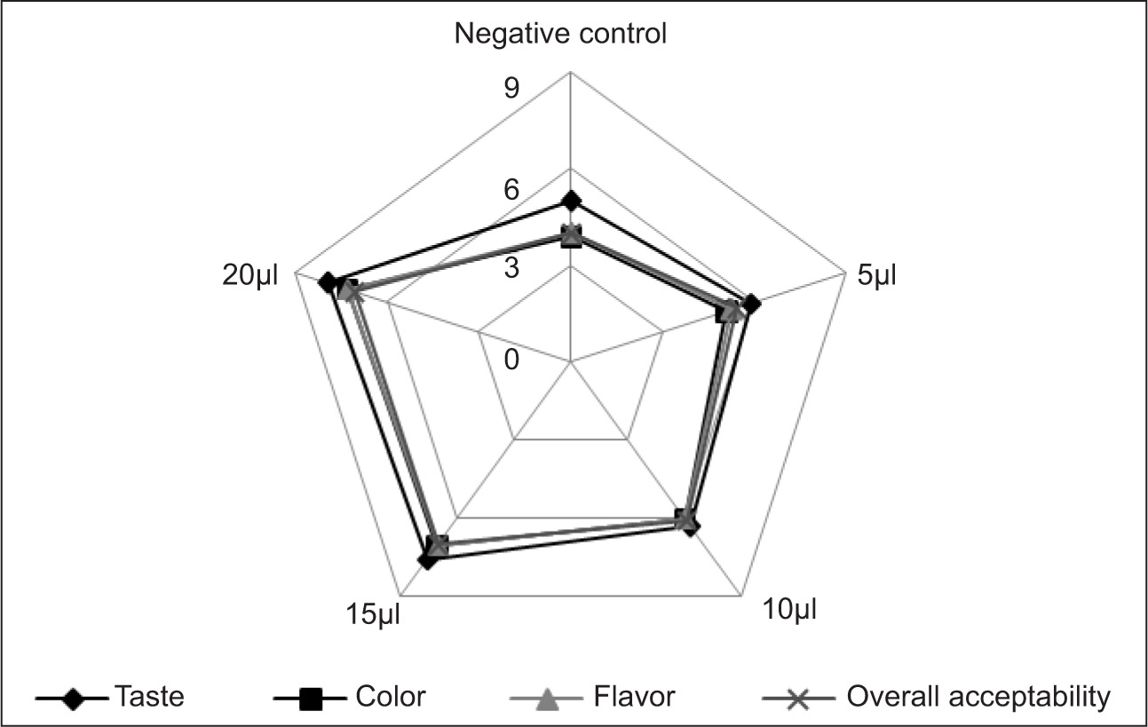 | Sensory parameters | Color | Taste | Flavor | Overall acceptability |