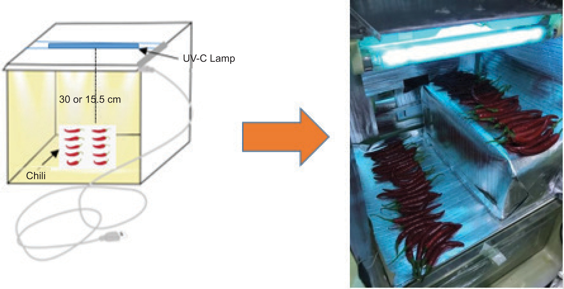 Figure 1. Illustration showing the application of UV-C irradiation on fresh chilies.