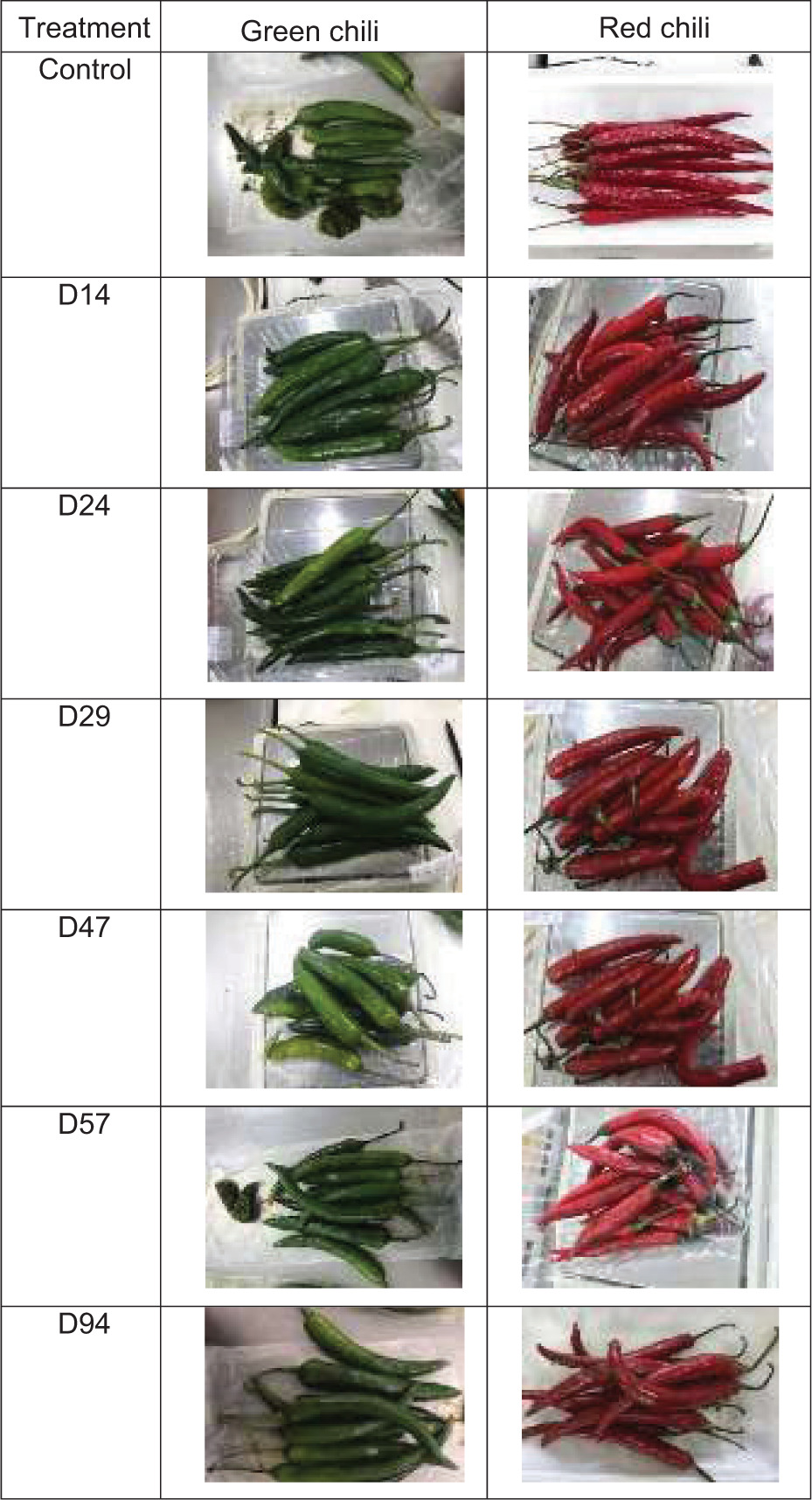 Figure 6. Images of fresh chilies on Day 12 of storage.