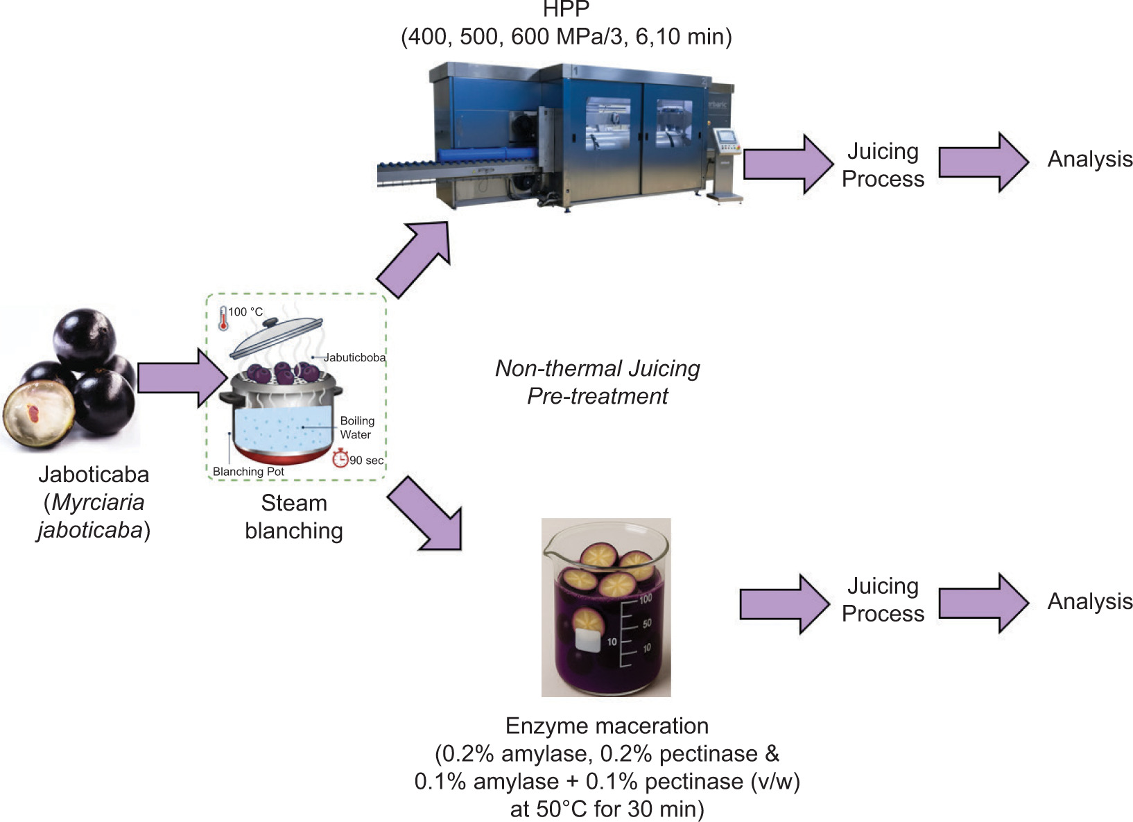 Figure 1. Flow chart of nonthermal pre-treatment methods for producing jaboticaba juice.